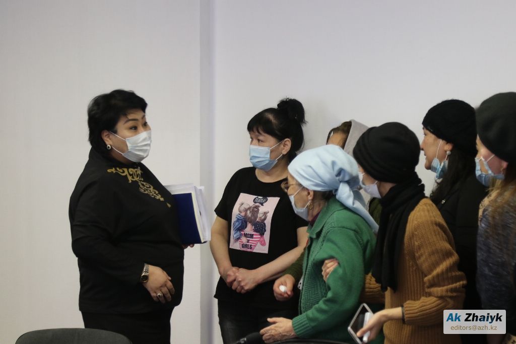 Бастапқыда олар сыртта тұрды, сәлден кейін олардың жанына ішкі саясат бөлімінің бастығы Қанат ӘЗМҰХАНОВ келіп, оларды ішке кіруге шақырды. 6-қабатта тұрғындарды облыс әкімінің орынбасарлары Бақытгүл ХАМЕНОВА мен Қайрат БЕКЕНОВ қабылдады.
