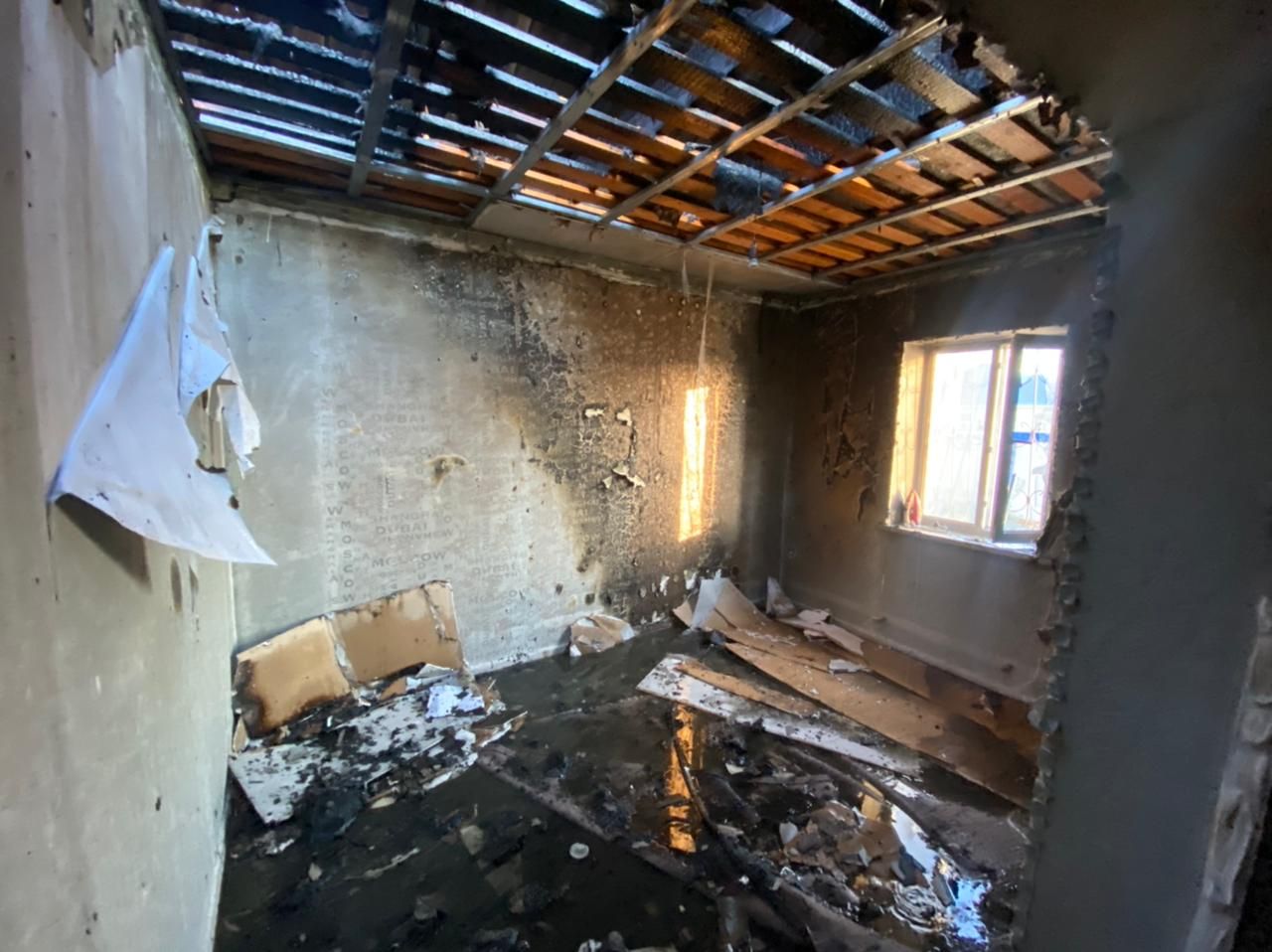 «Өрт болған жерде 1972 жылы туған әйел көз жұмды, 85% термиялық күйікпен 2009 жылы туған бала облыстық балалар ауруханасына жеткізілді (ауыр халде жан сақтау бөлімінде жатыр).