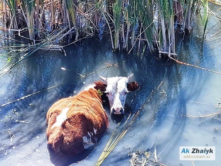 Жылыой ауданы Тұрғызба ауылының тұрғындары «АЖ»-ға өлі сиырлар мен әлі де тірі, батпаққа батып, көмек күтіп тұрған сиырлардың бірнеше суреті мен видеосын жолдады: