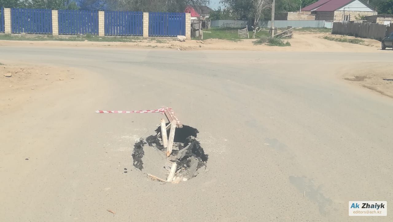 Қабдешев көшесіндегі жолдың қақ ортасында асфальт бұзылып, үлкен үңгір пайда болған. Д.Қонаев көшесі мен Көктем ықшамауданында да дәл осындай көрініс.