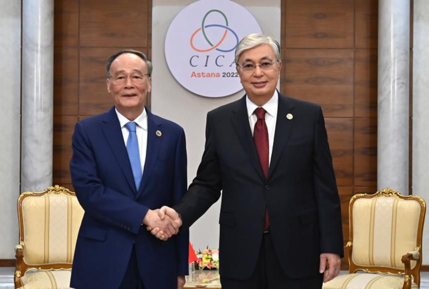 Өз кезегінде Ван Цишань Қасым-Жомарт Тоқаевқа ҚХР Төрағасы Си Цзиньпиннің сәлемін жеткізді және Қытай мен Қазақстанның сауда-экономикалық, инвестициялық, көлік-логистикалық, мәдени-гуманитарлық салалардағы, өнеркәсіп кооперациясы мен цифрландыру бағытындағы екіжақты қатынастары қарқынды дамып келе жатқанын атап өтті.