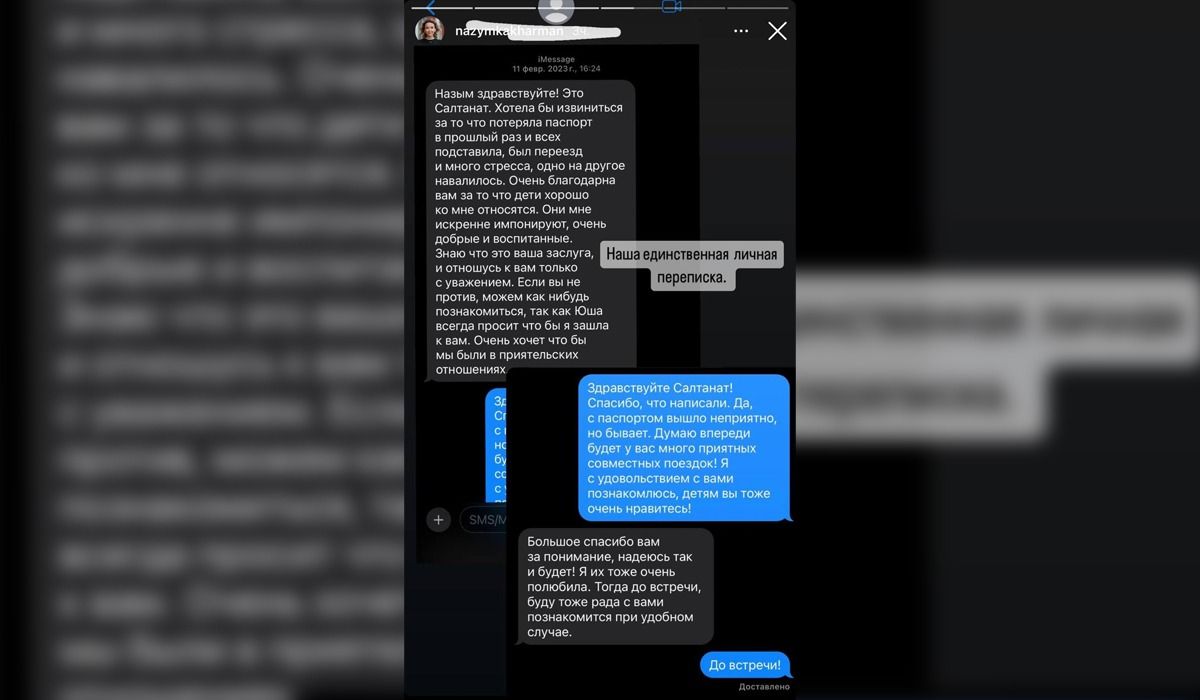 «Міне, бұл алғашқы және соңғы рет хат арқылы сөйлескен кезіміз еді», дейді Назым. Хат мәтінінде көрініп тұрғандай, Салтанат Нүкенова Назымға хат жазып, балаларының өте тәрбиелі екенін айтқан. Сонымен қатар, Назыммен танысып, араласып тұрғысы келетінін жазған екен. Өз кезегінде Назым Салтанатпен қуана танысатынын, балалары Салтанатты қатты жақсы көретіндерін айтқан. Бұл сөзінің де дәлелі ретінде Назым Қаһарман қызының Салтанатқа жазған хатын көрсеткен.