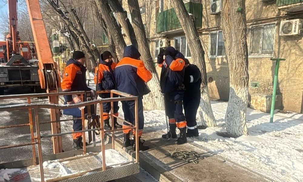 Атырауда көпқабатты тұрғын үйлердің шатырларында жиналып, құлау қаупі бар мұздарды тазалау жұмыстары жүргізілуде.