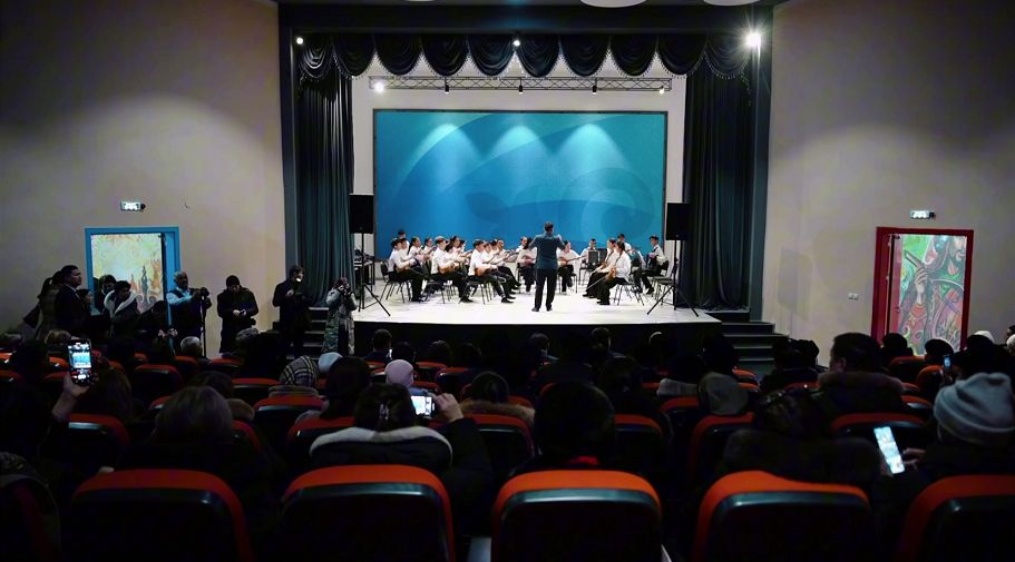 Өнер мектебінде бірінші қабатында 183 орындық акт залы, әрқайсысы 8 адамдық музыка сыныбы, қолданбалы өнер, әрбірі 6 адамдық кескіндеме, сурет, мүсін шеберханалары орналасқан. Сондай-ақ 11 адамдық би сабағына арналған зал мен 16 орындық буфет бар.