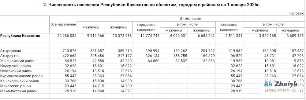 Өткен жылы Атырау облысында халық саны 6802 адамға көбейген, бұл өсімнің басым бөлігі (5608 адам) Атырау агломерациясының ауылдық жерлеріне тиесілі.