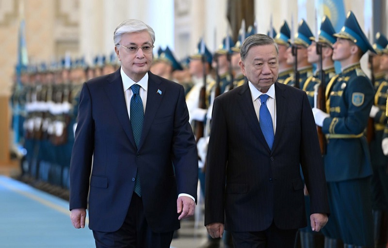 Қасым-Жомарт Тоқаев пен То Лам бір-біріне делегация мүшелерін таныстырды. Бұдан кейін Құрмет қарауылының бастығы рапорт беріп, Қазақстан мен Вьетнамның мемлекеттік әнұрандары шырқалды.