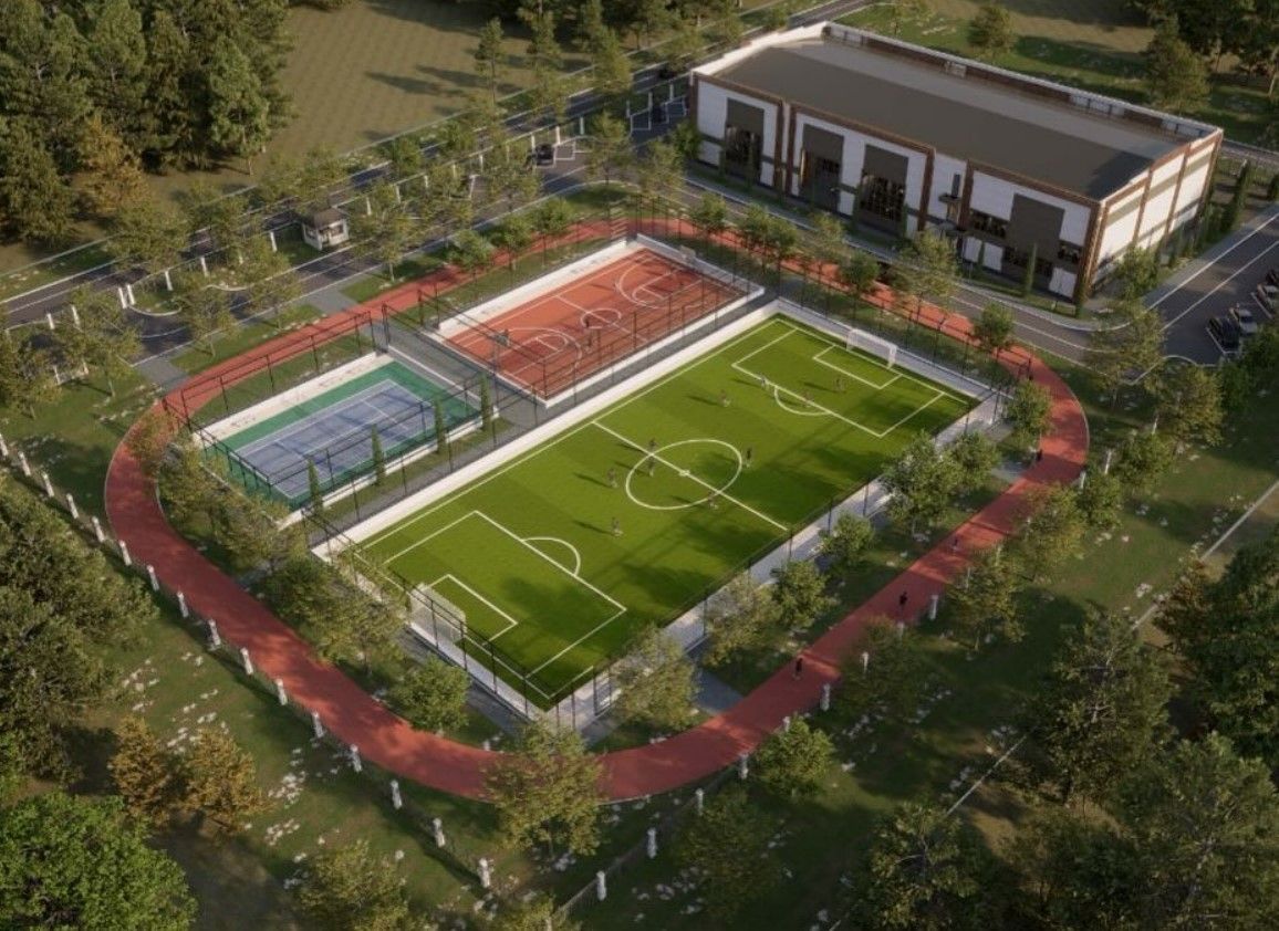 Екі қабатты спорт кешенінде шағын футбол, күрес, бокс залы мен жаттықтырушылар кабинеті, ерлер және әйелдер киім ауыстыратын орын мен медициналық кабинет қарастырылған.