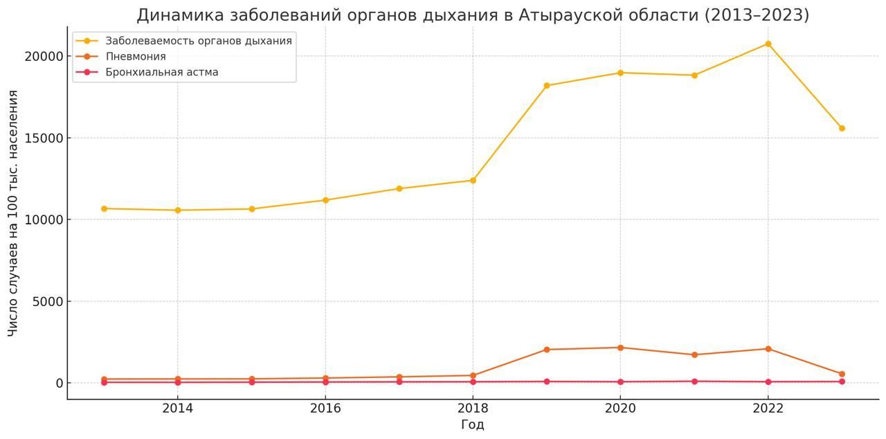 СЭС пен Салидат Қайырбекова атындағы ұлттық денсаулық сақтау ғылыми орталығы 2013–2024 жылдардағы тыныс алу жолдары ауруы бойынша ресми статистиканы саралады. Нәтиже көңіл көншітпейді.