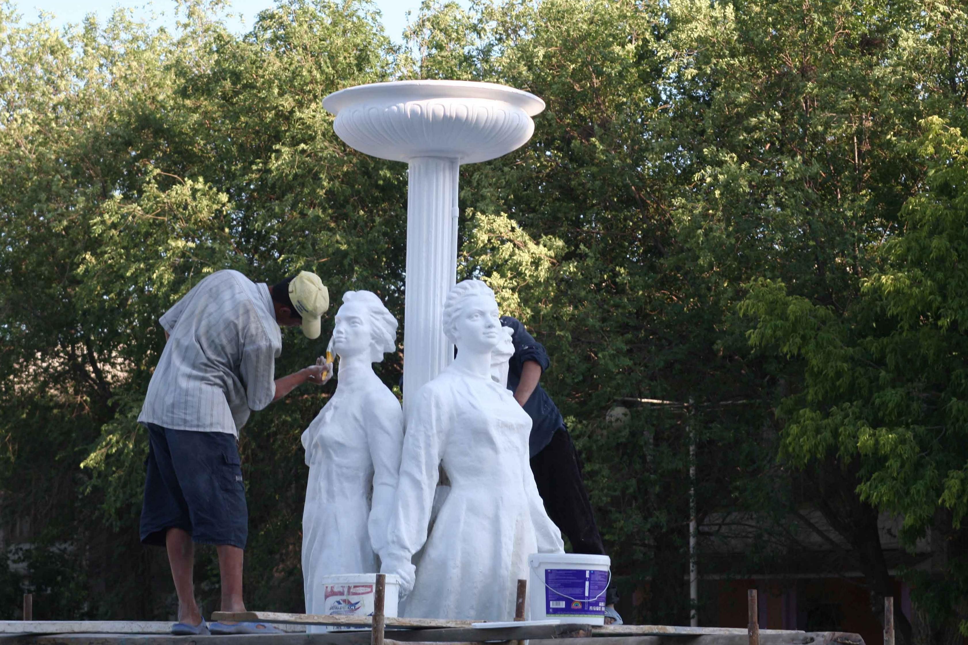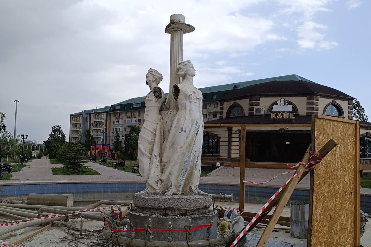 Мүсіндер өткен айда бұзылып, көшірілді. Мүсіндердің тұғырын кесіп алып, автокранмен жұлқып, үстіңгі бөлігін сындырды. Содан кейін мүсіндердің бүкіл қолын жұлып тастады.