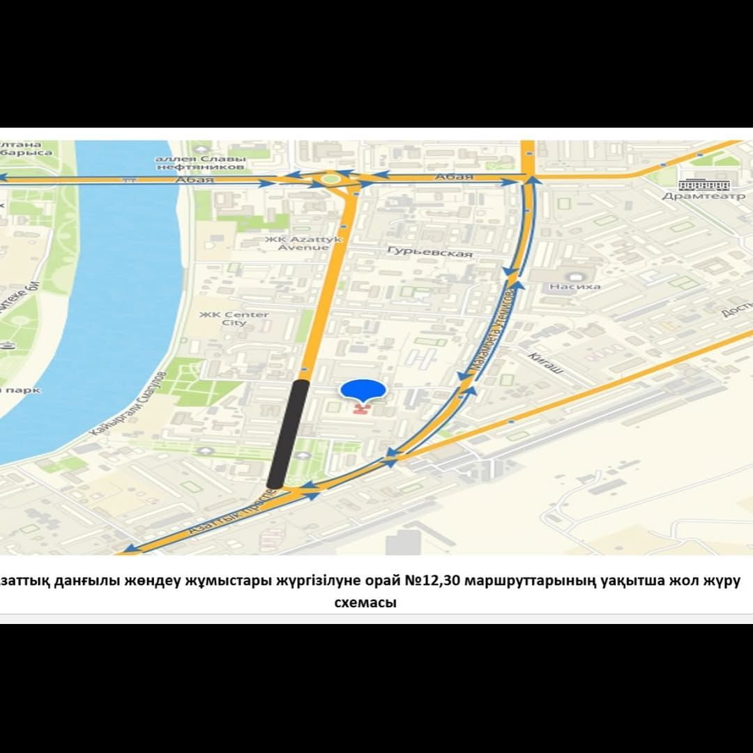 Аталған учаскеде қоғамдық көліктердің жүріс бағытында өзгерістер енгізіледі. Өзгерістерге қатысты толық ақпарат және жаңартылған маршруттар қосымша картада көрсетілген.