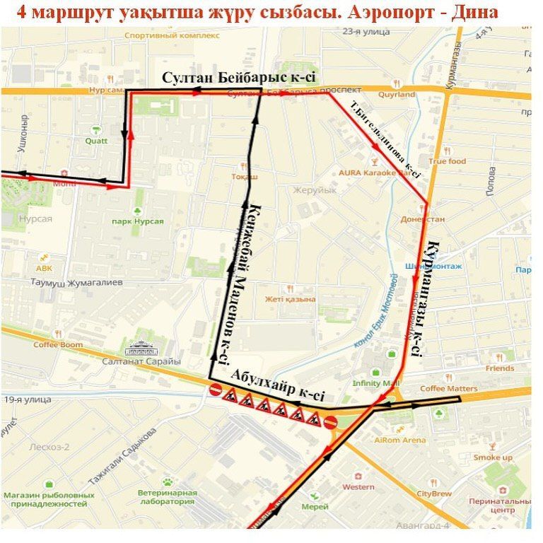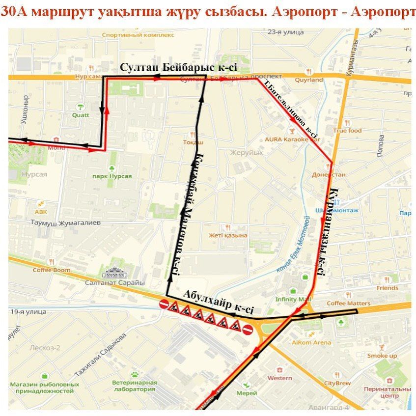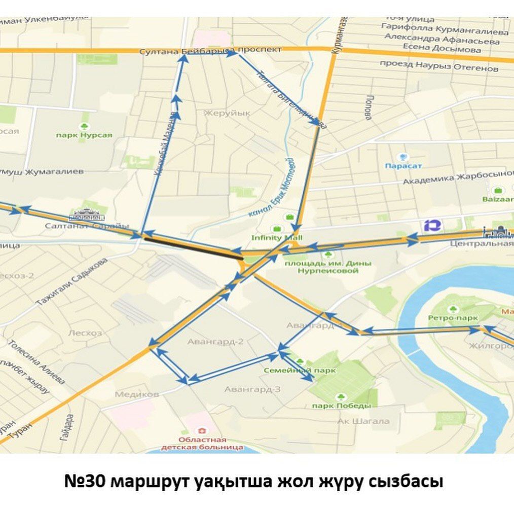 Бұл жұмыстардың нәтижесінде қоғамдық көліктердің жүріс бағыты өзгереді, ол арнайы картада көрсетілген: