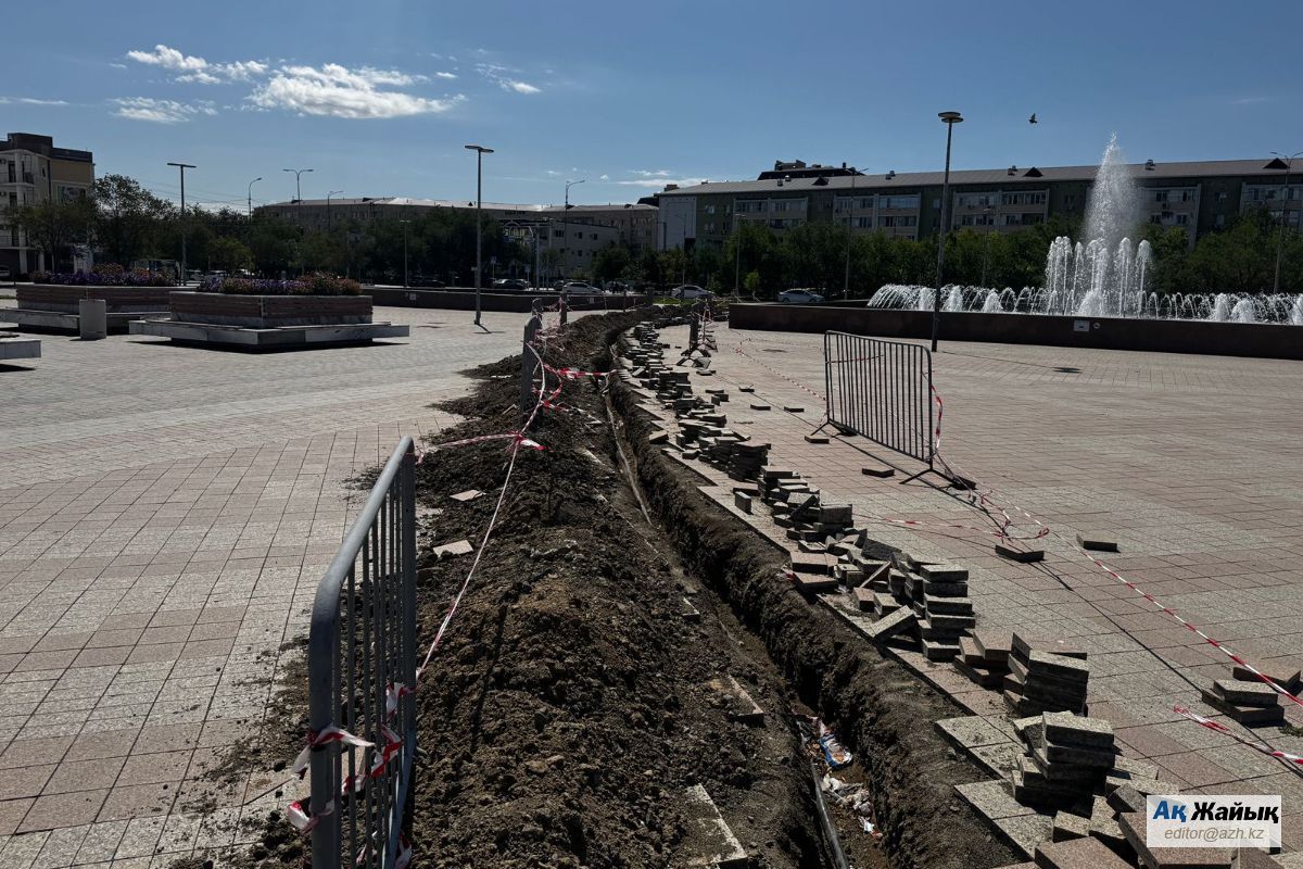 Атыраудың мерекелер орталығы әрі рухани символына айналған Исатай мен Махамбет алаңы бүгінде қала тұрғындарын траншеялармен, сынған плиткалармен және мүжілген ескерткіш тұғырымен қарсы алады.
