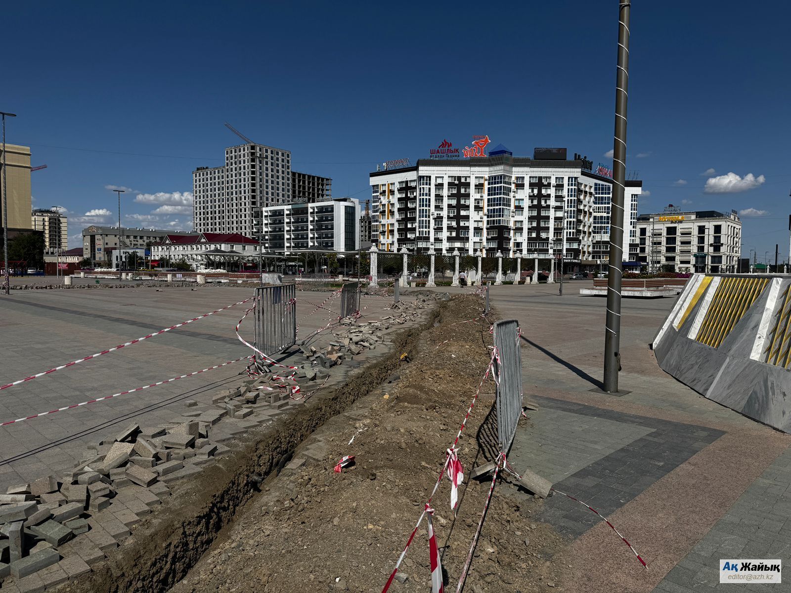 Әкімдіктегілердің айтуынша, алаңда жаңа электр желісі тартылып жатыр және мәрмәр жабындыны ауыстыру жоспарланған. Алайда әзірге бұл алаңнан гөрі қараусыз қалған құрылыс алаңына көбірек ұқсайды.