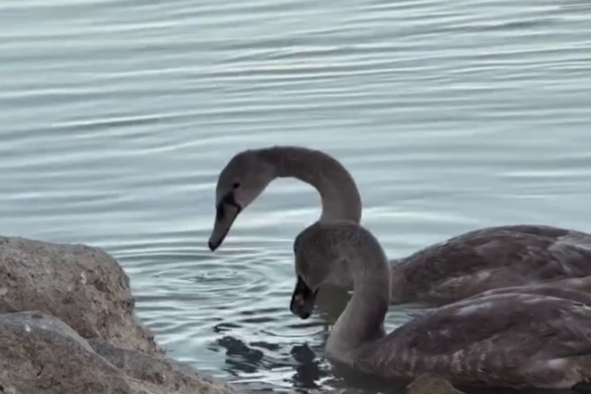 Әлеуметтік желілерде Атырау облысында Жайық өзенінде аққудың екі балапаны қыстап қалғаны туралы ақпарат тарады.