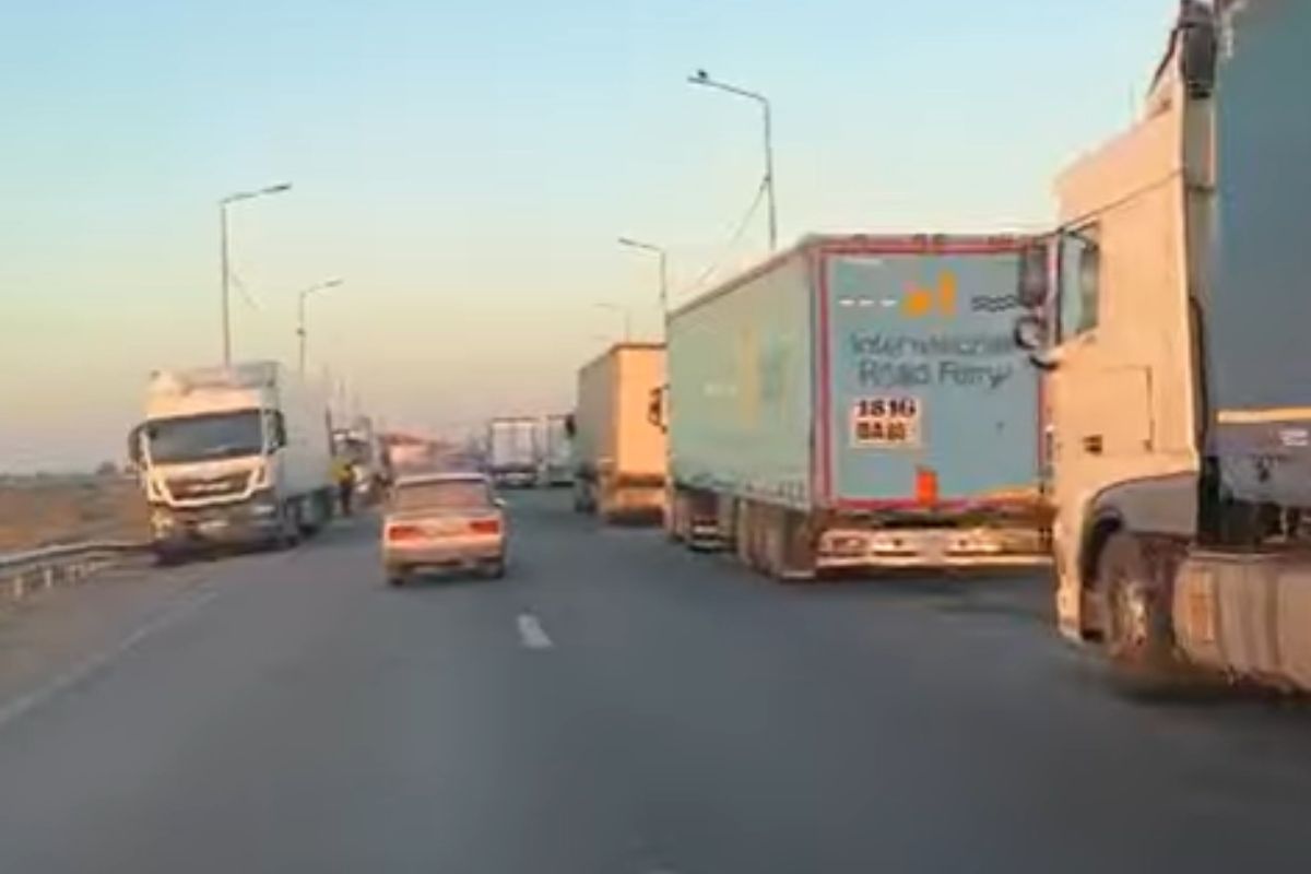 Атырау облысындағы «Құрманғазы» шекара өткізу пунктінде шетелдік жүк көліктері ұзақ уақыт бойы кезекте тұр. Куәгерлердің сөзінше, кептелістің ұзындығы үш шақырымға жеткен.