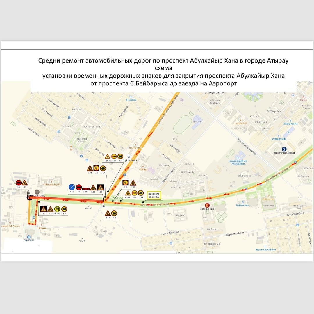 Атырау қаласы әкімдігі хабарлағандай, 26 қыркүйек күні сағат 15:00-де Әбілқайыр хан даңғылында орташа жөндеу жұмыстарына байланысты Сұлтан Бейбарыс даңғылынан әуежайға кіретін жолға дейінгі бір жақ бөлігі уақытша жабылады.