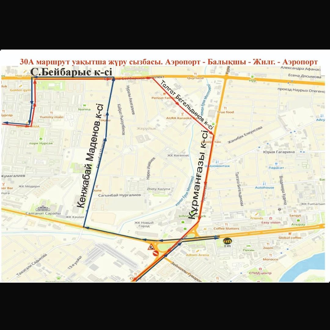 Қоғамдық көліктердің жүру бағыты өзгереді, жаңартылған бағыттар қосымша картада көрсетілген.