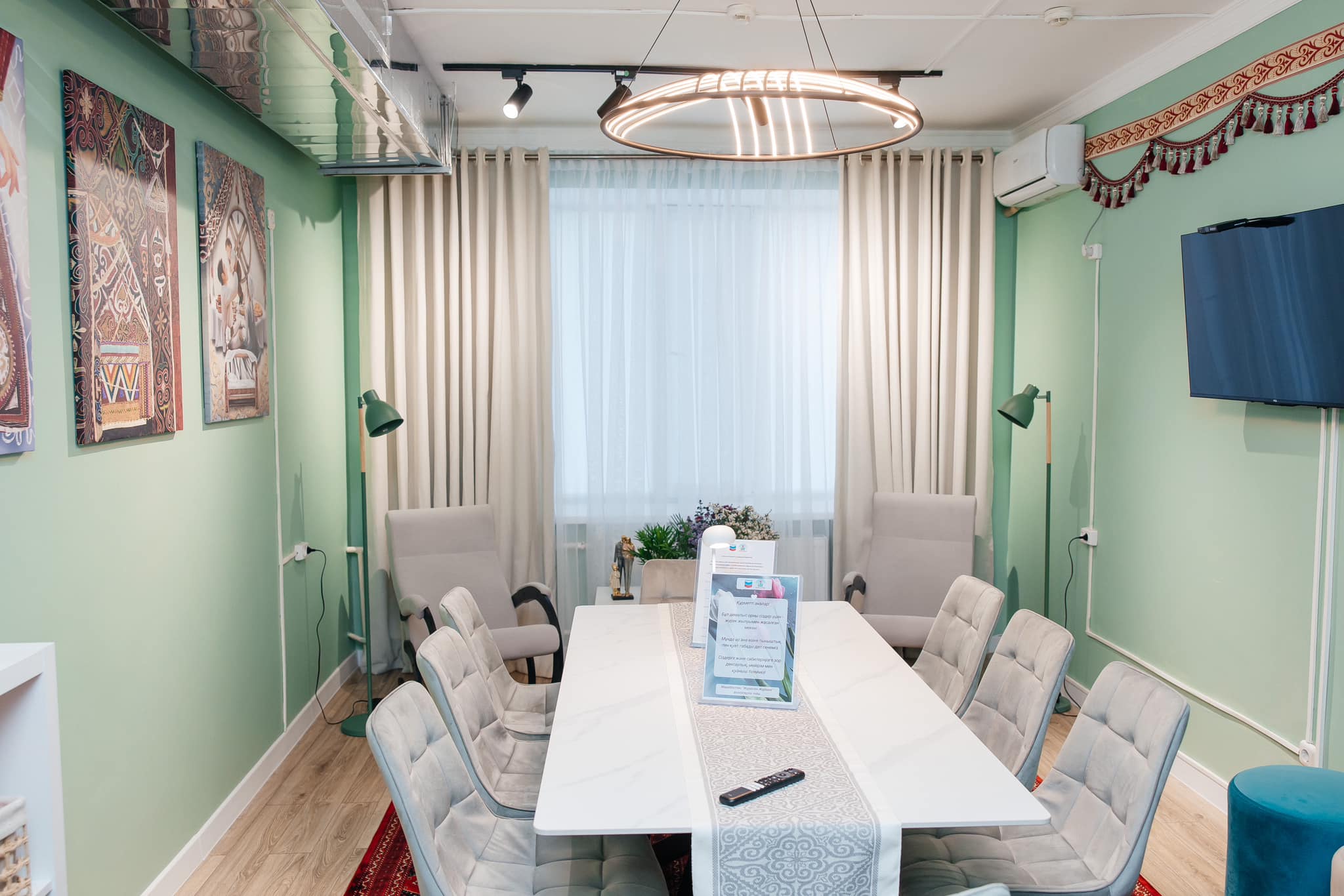Жалпы ауданы 21 шаршы метр болатын бөлме қазақтың ұлттық ою-өрнектерімен безендіріліп, заманауи интерьер шешімдерімен толықтырылған.