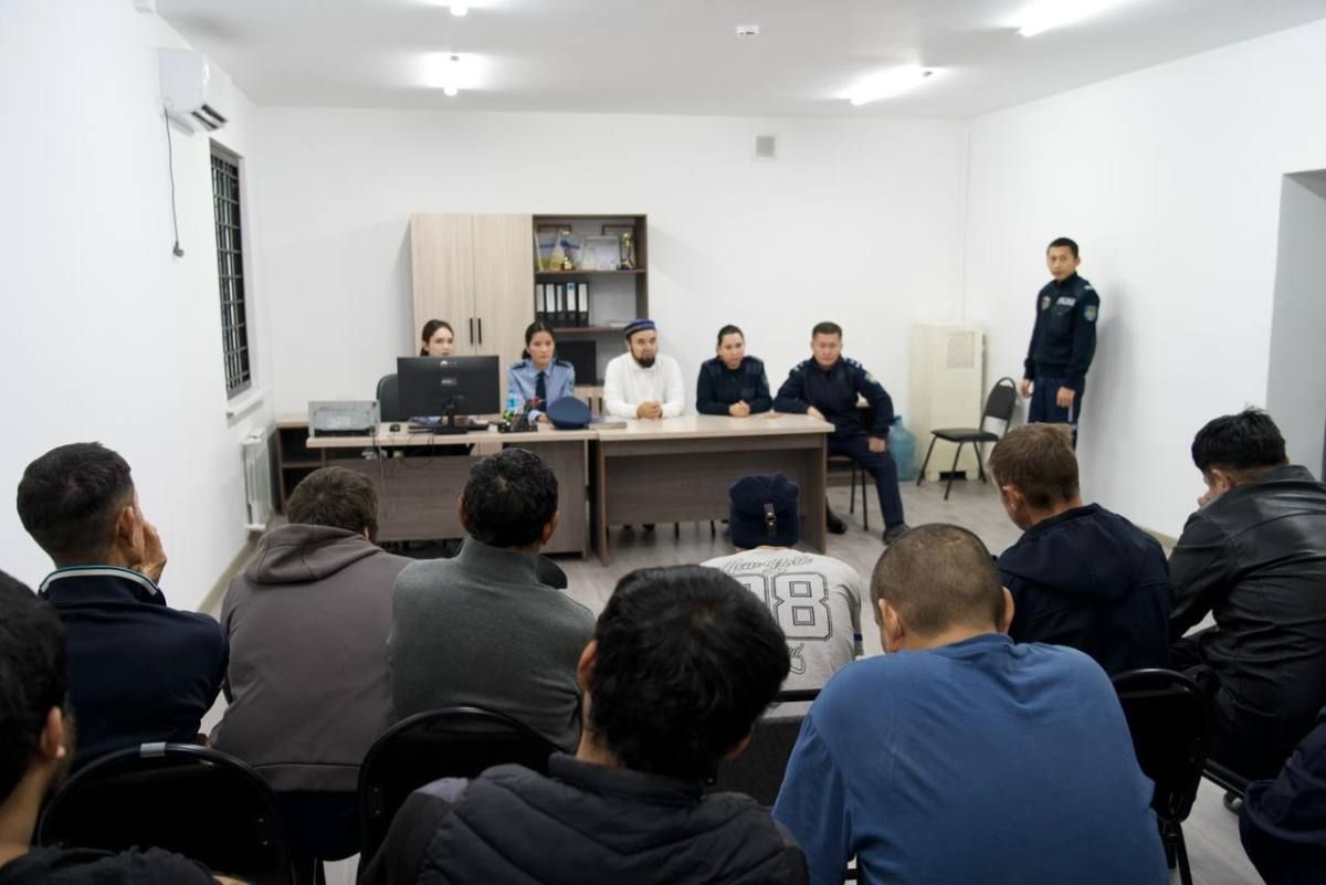 Атырау қаласы полиция басқармасының әйелдерді зорлық-зомбылықтан қорғау тобының инспекторлары Иманғали орталық мешітінің наиб имамымен бірге әкімшілік қамауда отырған азаматтармен кездесті.
