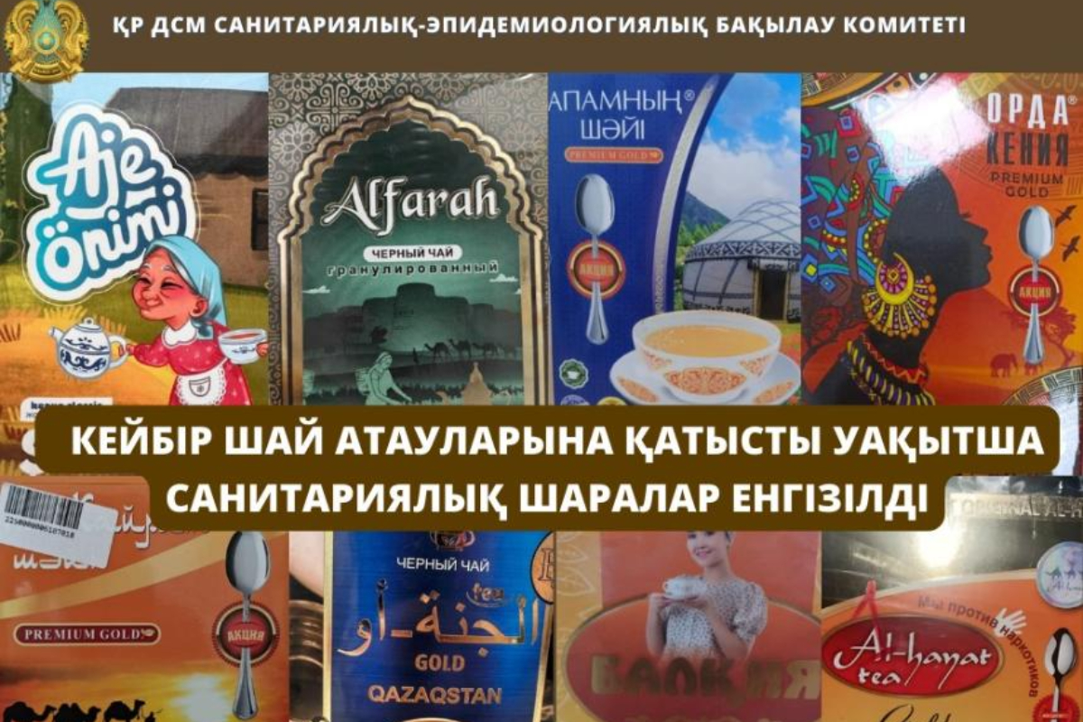 Қазақстан Республикасы Бас мемлекеттік санитариялық дәрігерінің 2026 жылғы 5 қаңтардағы № 1-ПГСВ қаулысымен халықтың санитариялық-эпидемиологиялық саламаттылығы саласындағы бақылау мақсатында сатып алу нәтижелері бойынша тиісті нормативтік құқықтық актілердің, Кеден одағының «Тамақ өнімдерінің қауіпсіздігі туралы» (021/2011 КО ТР), «Тағамдық қоспалардың, хош иістендіргіштердің және технологиялық қосалқы құралдардың қауіпсіздігі талаптары» (029/2012 КО ТР), «Тамақ өнімдерін қаптамалау бөлігінде» (022/2011 КО ТР) техникалық регламенттерінің талаптарына сәйкес келмейтін шайды әкелуге және сатуға тыйым салынды.