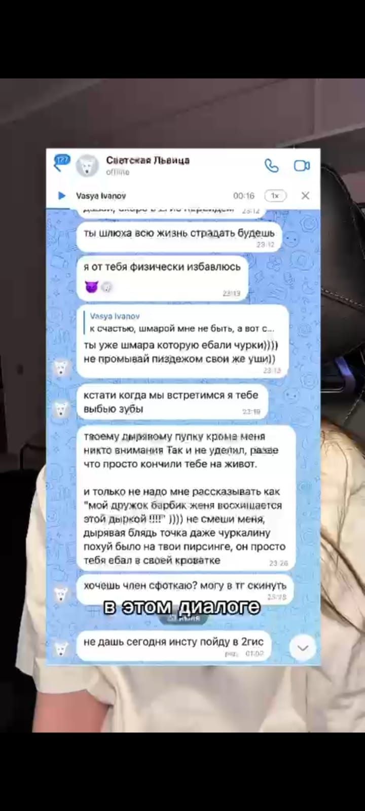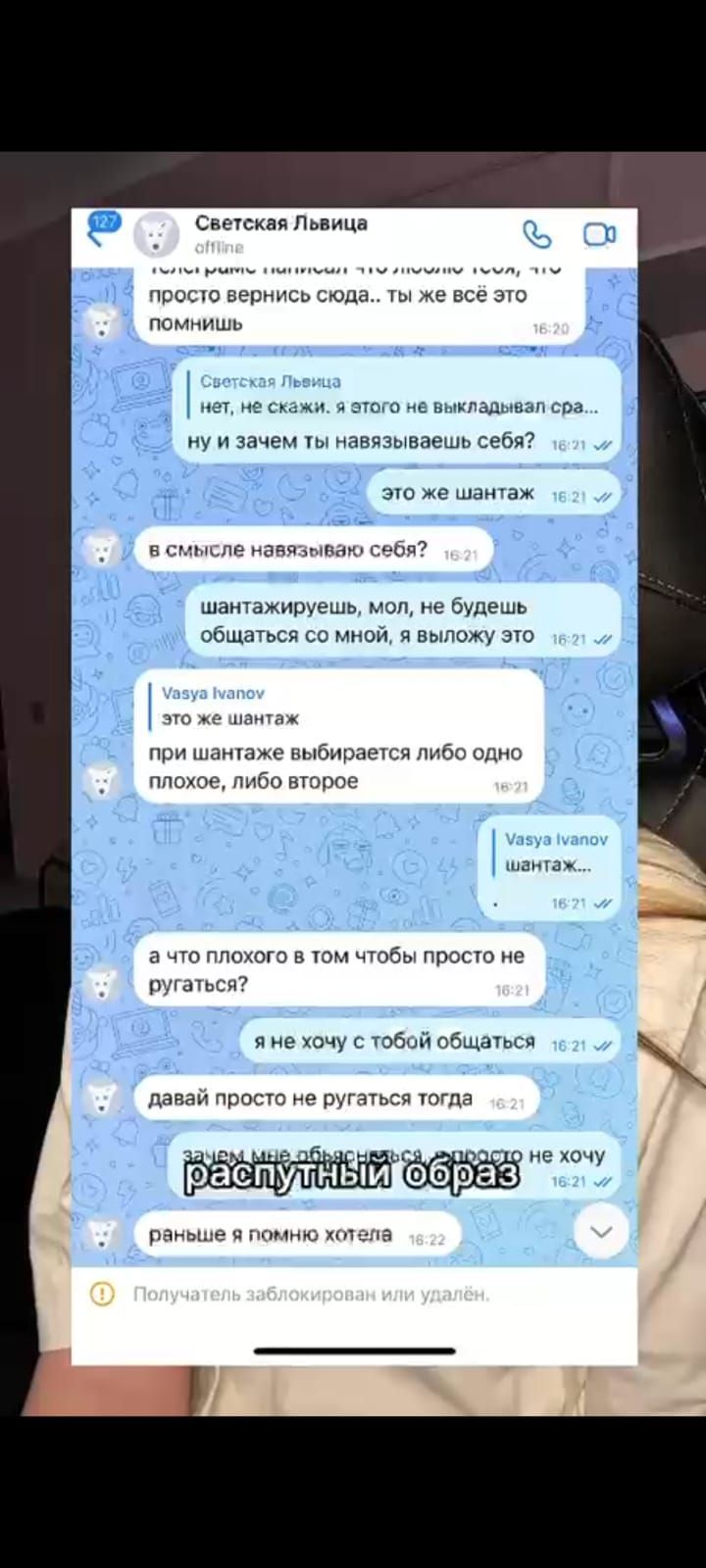 Сонымен қатар, оның атынан үшінші тұлғалармен интимдік сипаттағы хат алмасулар жүргізілген. Бұл диалогтарда сталкер қыздың үй мекенжайын көрсеткен.