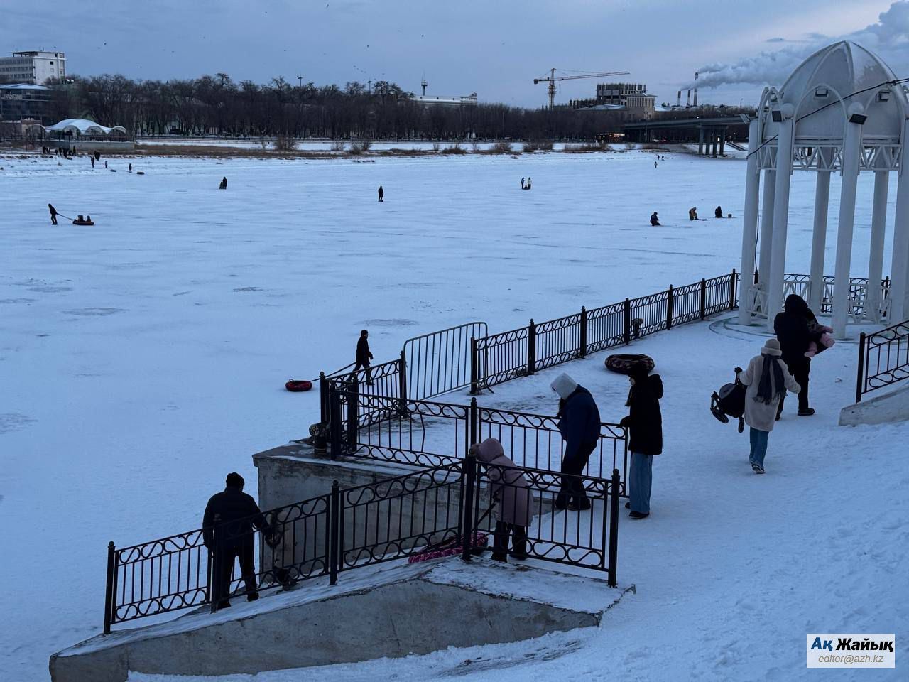Алайда сол күні кешке мүлде басқа көрініс байқалды. Облыс әкімдігі ғимаратының қарсы бетінде адамдар мұзға еркін шығып, дөңгелекпен сырғанап, ойнап, балаларымен уақыт өткізді. Ол кезде ешқандай шектеу де, төтенше қызметтің араласуы да байқалмады.