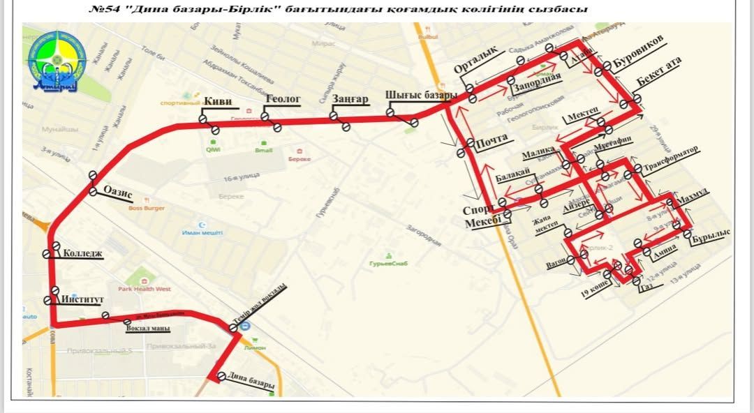 11 ақпаннан бастап Атыраудағы №54 «Дина базары – Бірлік» бағытындағы қоғамдық көліктердің бағыты өзгереді.
