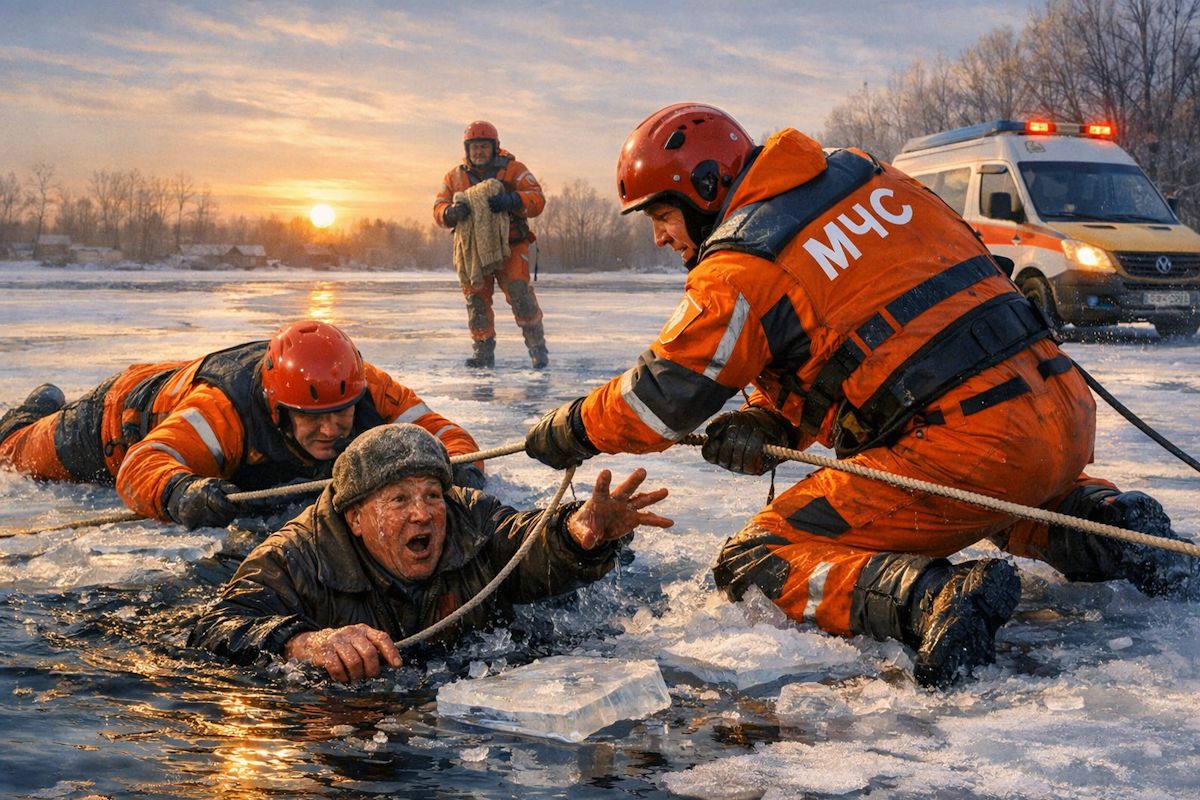 Атырау облысының Құлсары қаласында ТЖМ құтқарушылары Қамыскөл көлінде мұз ойылып, суға түсіп кеткен ер адамды шығарып алды.
