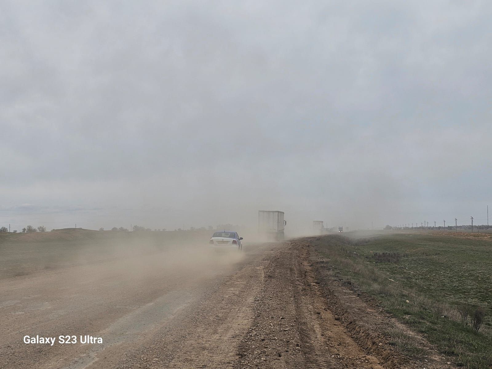 Автокөліктер, әсіресе ауыр жүкті фуралар жүрген сайын топырақтар аспанға көтеріліп, көзкөрсетпес шаң тұрған. Ешқандай қауіпсіздік сақталмаған. Не полиция, не осыған жауапты мекеме мамандары көрінбейді.