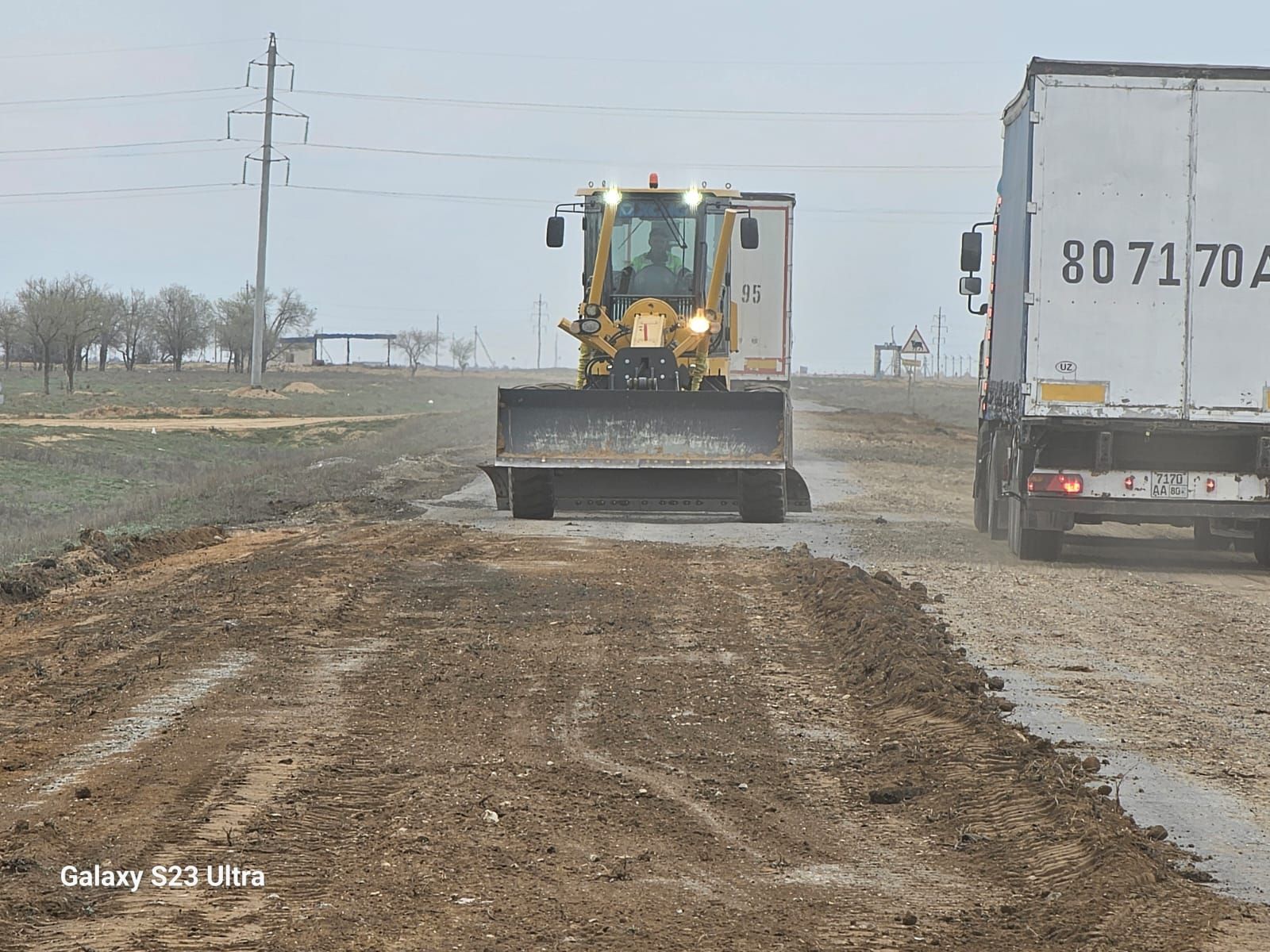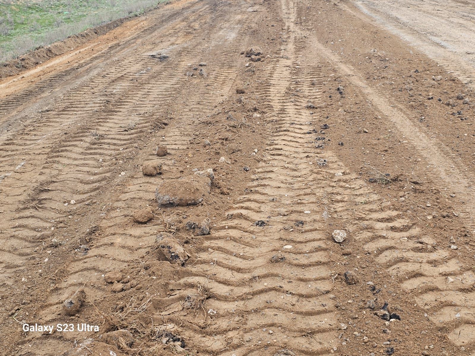 Куәгерлердің айтуынша, "топырақпен" шұңқырларды бітеу жұмыстары жүруде. Бір автогрейдер топырақты төсеп, жайған болады. Одан шыққан кесек тастар жайрап жатыр. Көкала шаң.