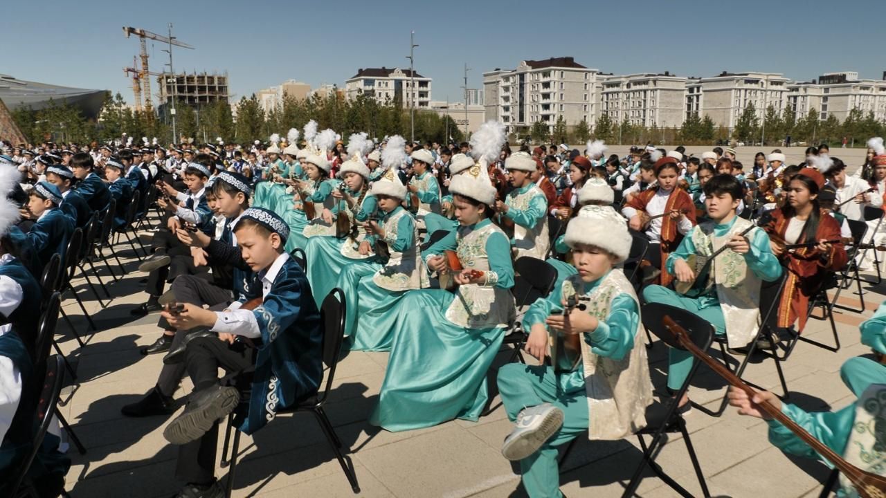Іс-шараға қала мектептерінен 2000-ға жуық оқушы қатысып, күйші-композитор Қаршыға Ахмедияровтың «Алтын ұя» күйін бір мезетте орындады.