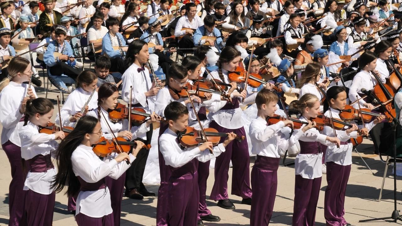 Балалар домбыра, қобыз, қылқобыз, жетіген, сазсырнай, флейта және скрипка секілді ұлттық және классикалық аспаптарда ойнады. Флешмобқа өнер және музыкалық мектептердің, сондай-ақ жалпы білім беру ұйымдарының 10–16 жас аралығындағы тәрбиеленушілері қатысты.