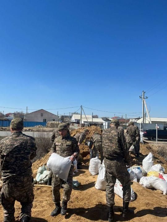 В Западно-Казахстанской области личный состав бригады территориальной обороны участвует в противопаводковых мероприятиях в населенных пунктах Махамбет и Павлово Байтерекского района. Военнослужащие бригады территориальной обороны Северо-Казахстанской области производят заготовку и укладку мешков с песком на для защиты паводкоопасных участков дорог и территории села Тепличное, Кызылжарского района.