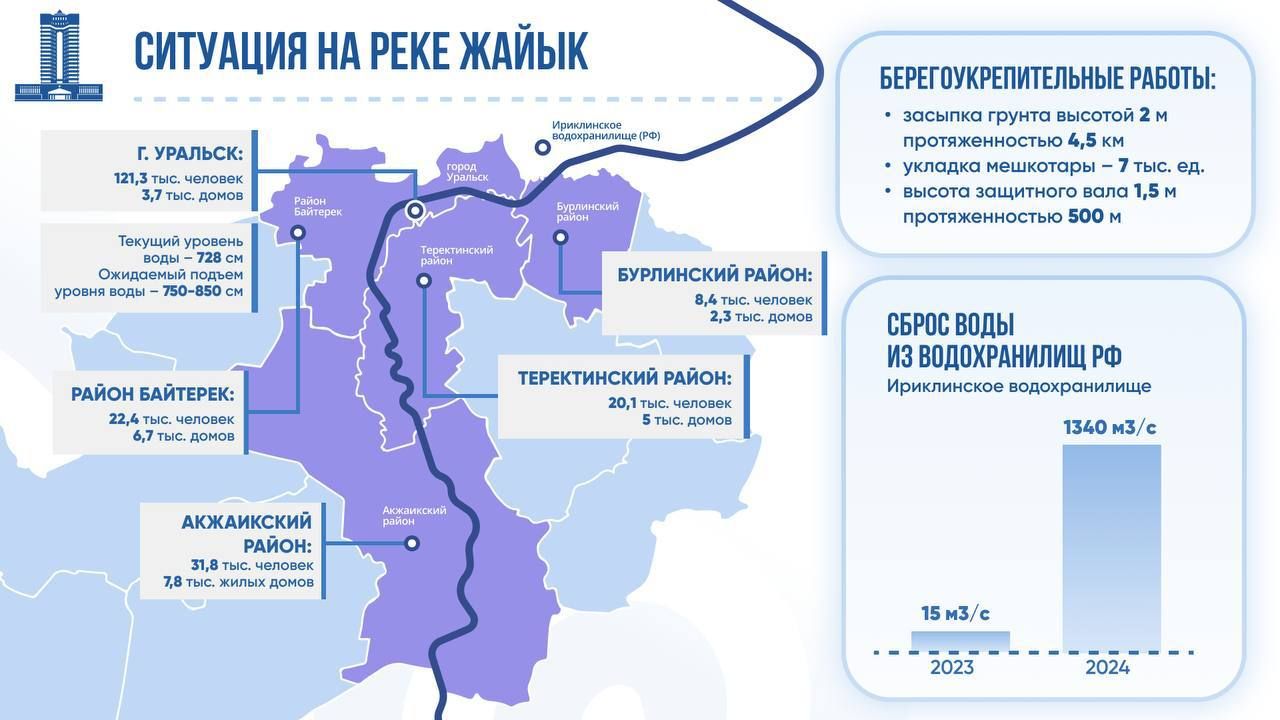 В этом случае пик паводков в ЗКО ожидается 17-19 апреля. Как сообщили в Казводхозе, дальнейший подъем ожидается за счет стока сброса с Ириклинского водохранилища и реки Сакмара.