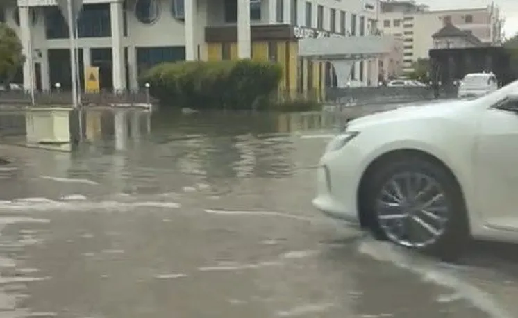 Многочасовой дождь принес большие неудобства жителям города Атырау. Из-за сильного ливня в некоторых районах города произошло подтопление улиц и дворовых территорий.