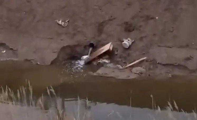 Житель города Атырау прислал в редакцию видео, где запечатлена труба, из которой вытекает вода в ерик Мостовой.