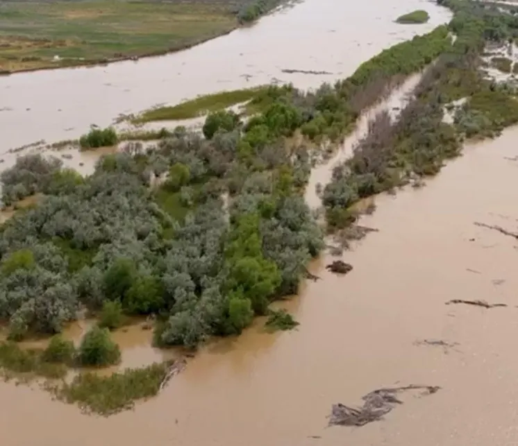 с. Жанаталап + 1 см, уровень воды - 380 см, критический уровень - 500 см;