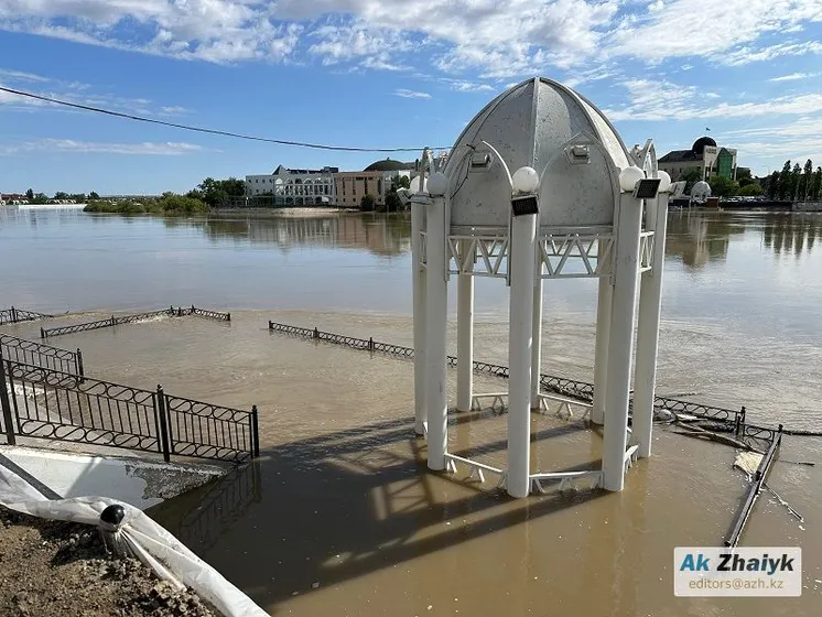 г. Атырау + 1 см, уровень воды - 574 см, критический уровень - 550 см;