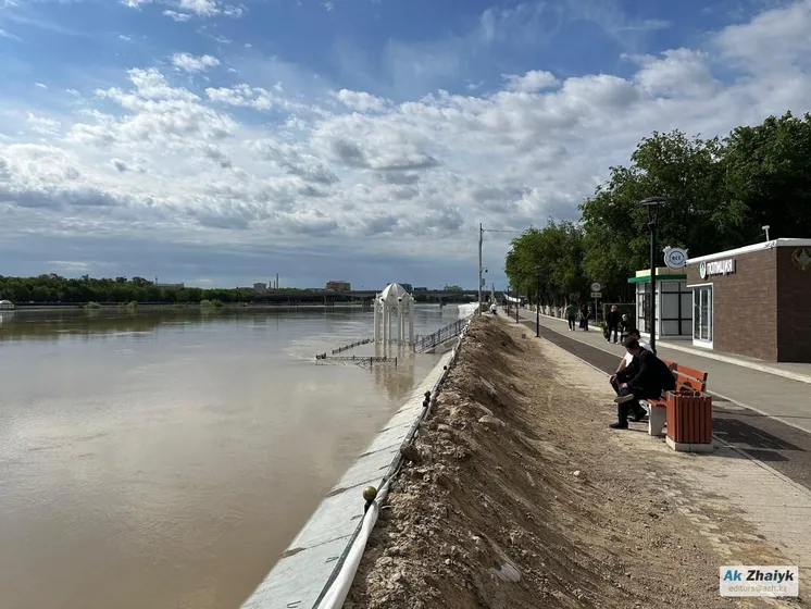 г. Атырау + 1 см, уровень воды - 574 см, критический уровень - 550 см;