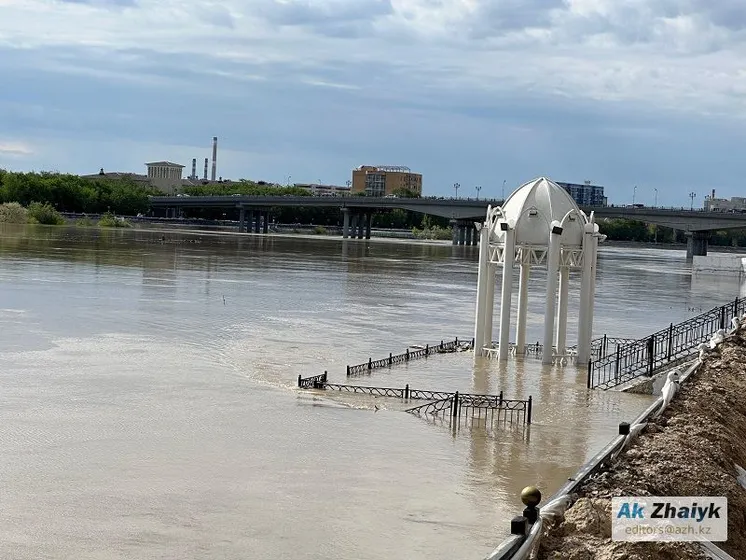 - г. Атырау + 4 см, уровень воды - 581 см, критический уровень - 550 см.