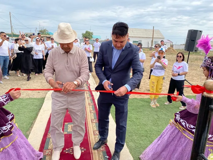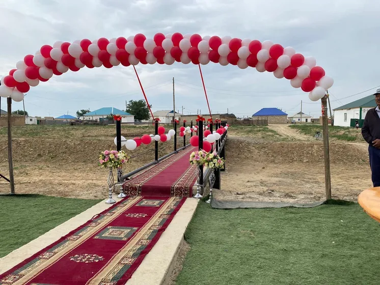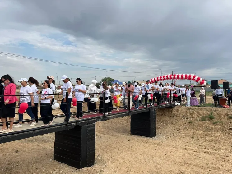 Аким села Азамат ЖАКСИЕВ и старейшина села Боранбай ТАЙЖАНОВ, принявшие участие в торжественной церемонии открытия моста, благословили односельчан, перерезали ленточку и одними из первых прошли по новому мосту вместе с выпускниками.