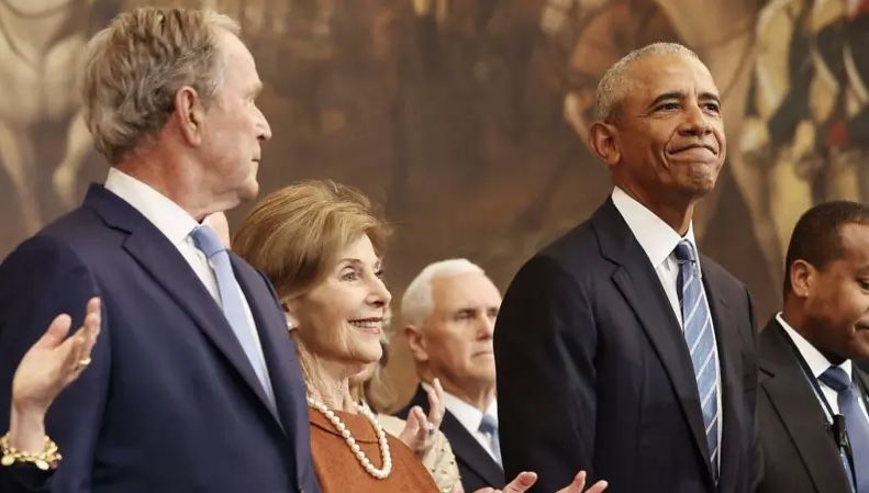 Церемония инаугурации проходила в ротонде Капитолия в Вашингтоне. Впервые с 1985 года ее проведение перенесли внутрь здания из-за плохих погодных условий.