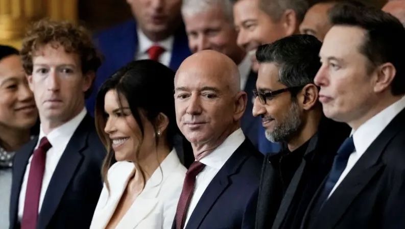 Помимо политиков, в мероприятии участвовали главы крупнейших технологических компаний, в том числе гендиректор Apple Тим Кук, основатель Amazon и Blue Origin Джефф Безос, соучредитель Meta Platforms Марк Цукерберг и, конечно же, активный сторонник Трампа, гендиректор Tesla и SpaceX Илон Маск (последние трое занимают первые места в списке богатейших людей мира)