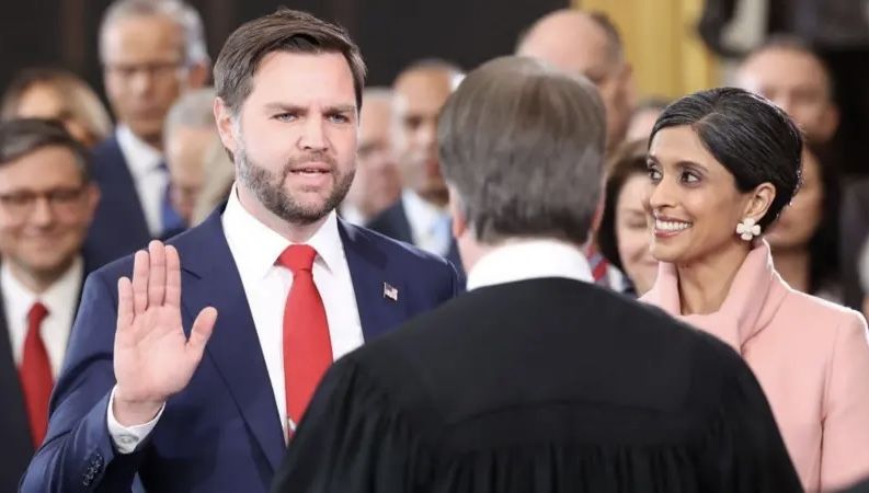 Первым клятву принес вице-президент Джей Ди Вэнс. Вице-президент США должен исполнять обязанности президента в случае его кончины, отставки или отречения от должности.