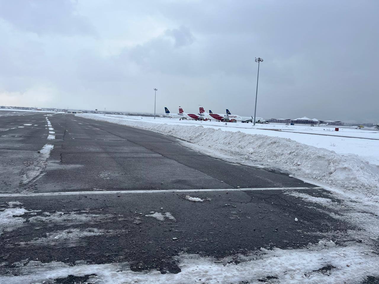 «Введены ограничения по предоставлению услуг по деайсингу в связи с интенсивностью снега. Все службы аэропорта работают в усиленном режиме, принимая все необходимые меры для минимизации задержек и восстановления нормального хода операций.