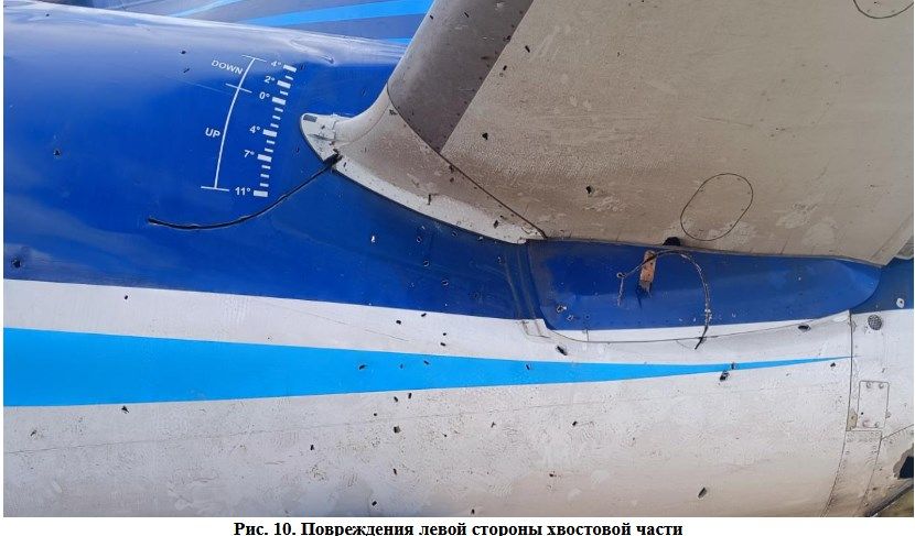 «Сквозные повреждения ВС указывают на проникновения внешних объектов в конструкцию ВС. Большинство сквозных повреждений находятся в киле и стабилизаторе. Визуальный осмотр сквозных повреждений показывает, что некоторые из них сквозные, в то время как другие являются глухими/несквозными повреждениями», - говорится в предварительном отчете.