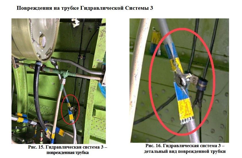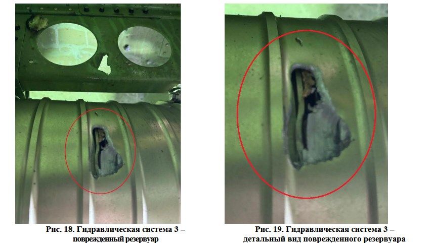 Следствием данных повреждений будет потеря гидравлической жидкости/давления», - говорится в предварительном отчете.