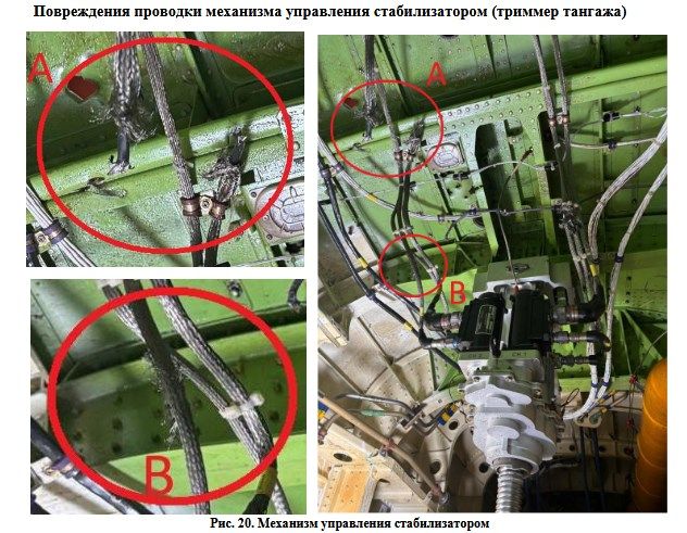 Следствием данных повреждений будет неработоспособность первого и второго канала триммирования по углу тангажа», - говорится в отчете.