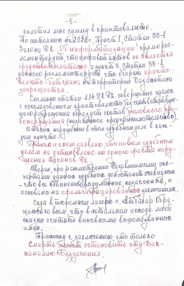 Во второй публикации раскрываются причины объявления голодовки: якобы в ходе судебного процесса не были найдены доказательства нарушения законов, а материалы были сфальсифицированы.
