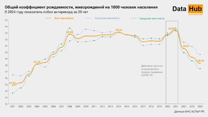 Что интересно, ухудшение ситуации в регионах-аутсайдерах притом происходит наименее стремительно. Так, самое слабое снижение рождаемости фиксируется в Восточно-Казахстанской области – на 0,24, до 11,72 г/г (одно из самых низких значений рождаемости). В Северо-Казахстанской области, где дела с рождаемостью традиционно складываются хуже всего, спад составил сравнительно скромные 0,72. Текущий уровень – 9,72.
